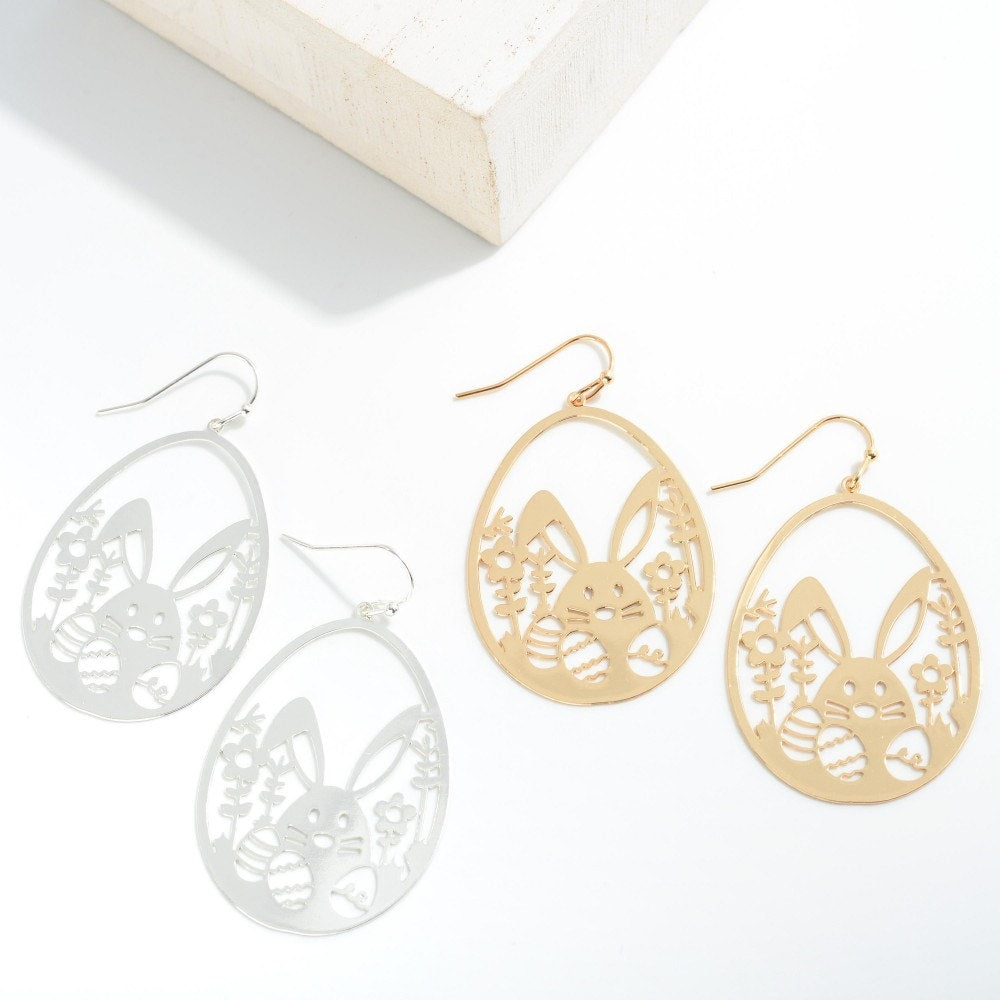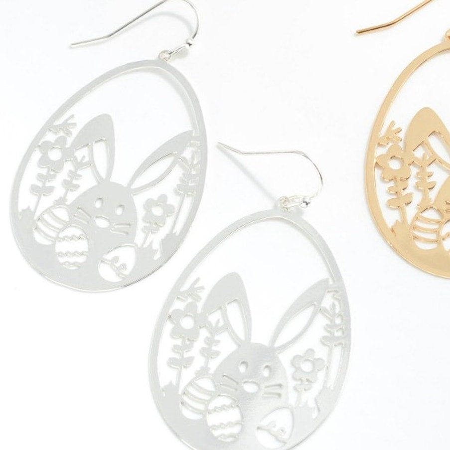 Brass Easter Drop Earrings Featuring Easter Bunny Silver