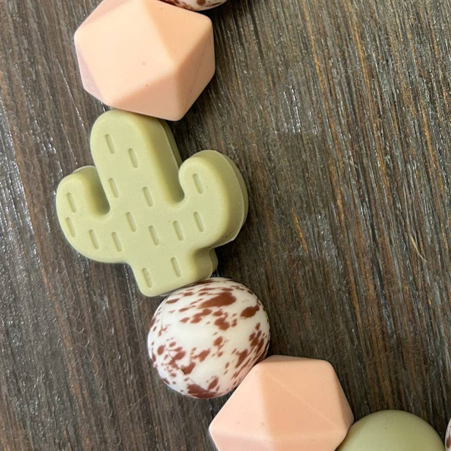 Cactus Western Silicone Beaded Wristlet Keychain Bag Charm
