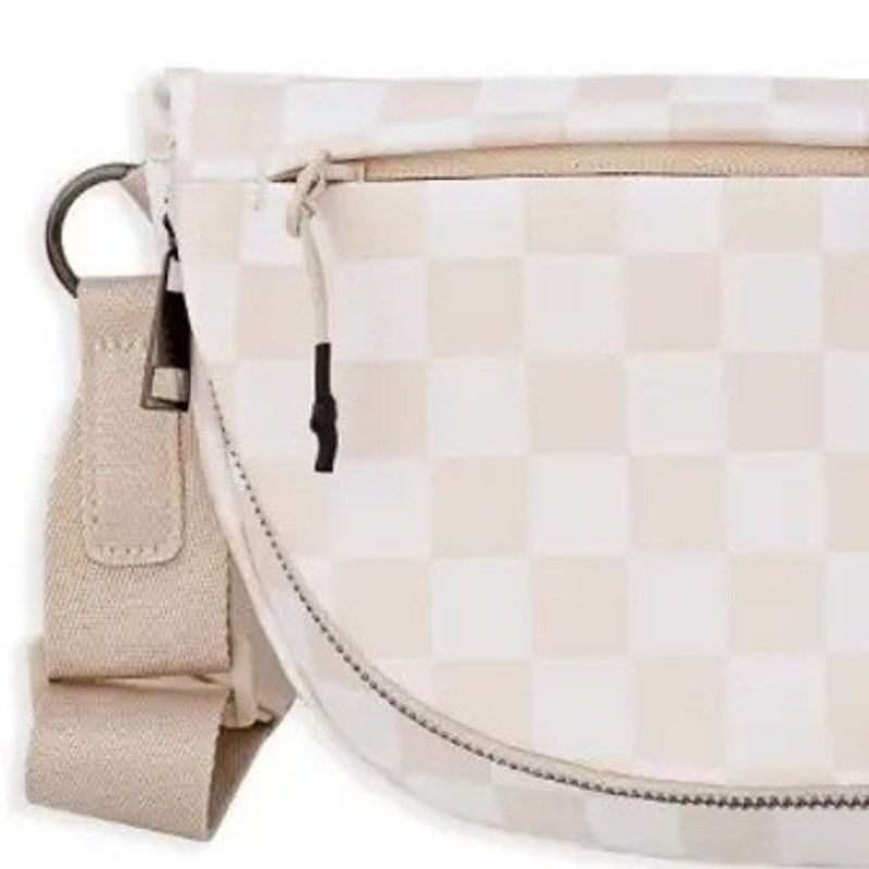Checkered Nylon Fanny Pack Sling Bags Cream Beige