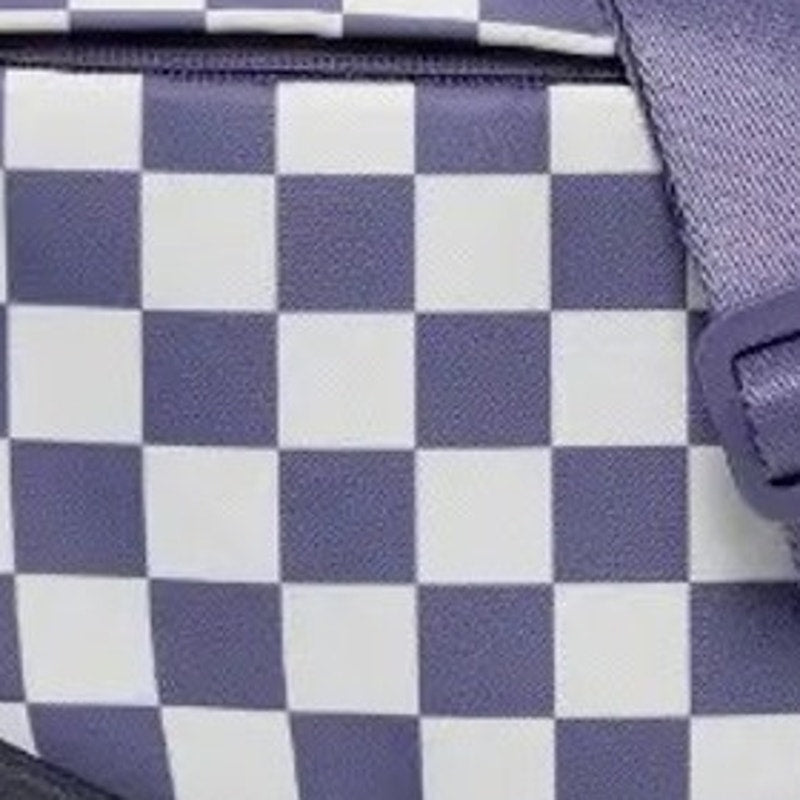Checkered Nylon Fanny Pack Sling Bags Purple White