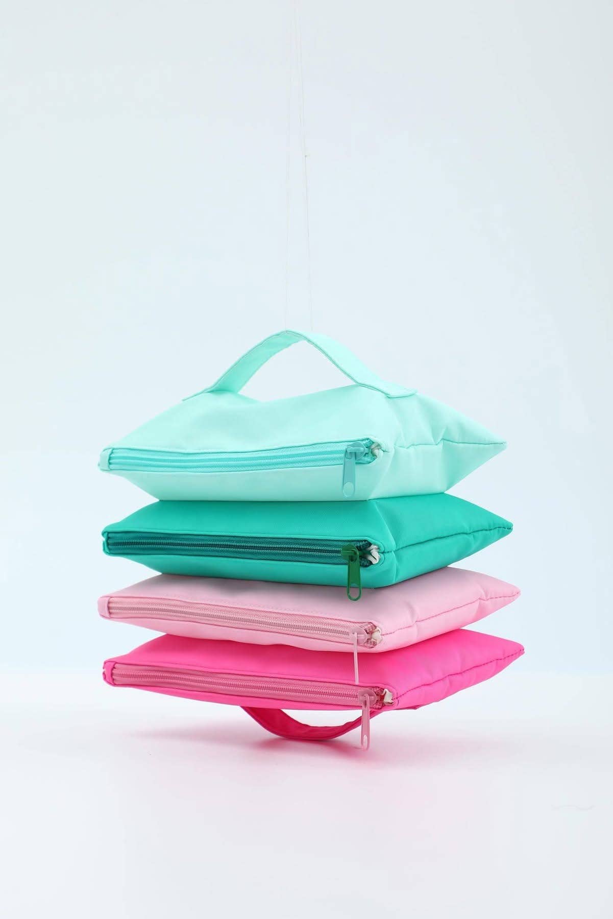 These flexible travel bags are made out of nylon and come ready to pack all your toiletries for your adventures! With a zipper close and 4 different sections, it's easy to stay organized. Size: 8.75" x 5.25" x 3" for each section