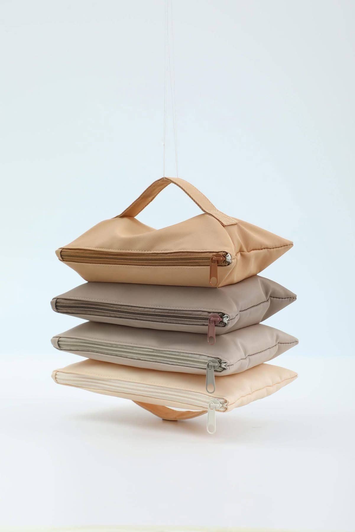 Flexible  Accordion Nylon Toiletry Cosmetic Travel Bags Neutral