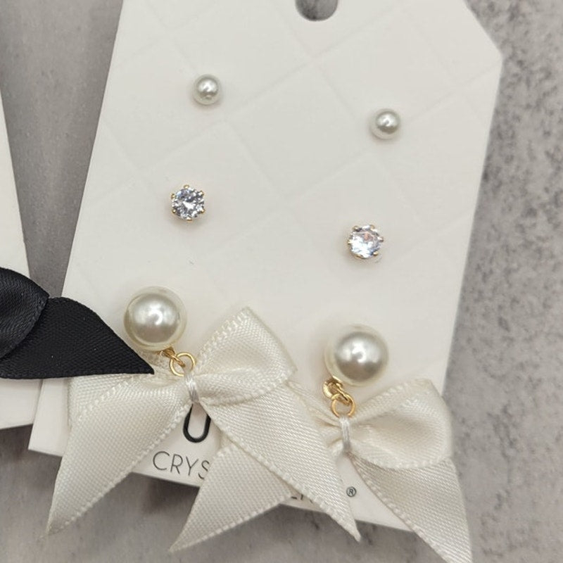 Elevate your accessory collection with our versatile 3-Pack Pearl Bow and Stud Earrings. This set offers a chic combination of classic elegance and modern style, featuring a variety of designs to suit any occasion. Key Features: Pearl Bow Earrings: Delicate and charming, these earrings feature a refined bow design adorned with lustrous pearls, adding a touch of sophistication to your look. Classic Stud Earrings: Simple yet elegant, these stud earrings are perfect for everyday wear, offering a timeless and versatile addition to your jewelry collection. Great Value: This 3-pack offers a variety of designs at a great value, making it an ideal choice for expanding your jewelry collection or gifting to someone special. Enhance your style with this elegant 3-pack of Pearl Bow and Stud Earrings, a versatile and sophisticated addition to any jewelry wardrobe.
