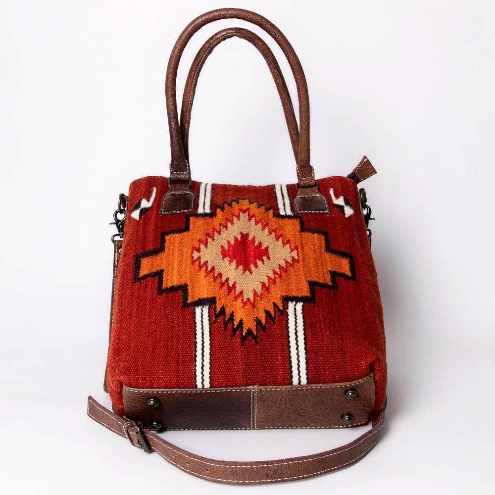 American Darling Saddle Blanket Tote - Handwoven Wool Leather Western Bag Red