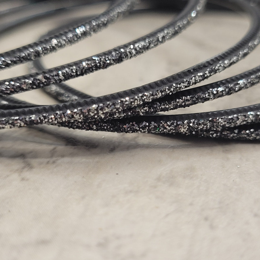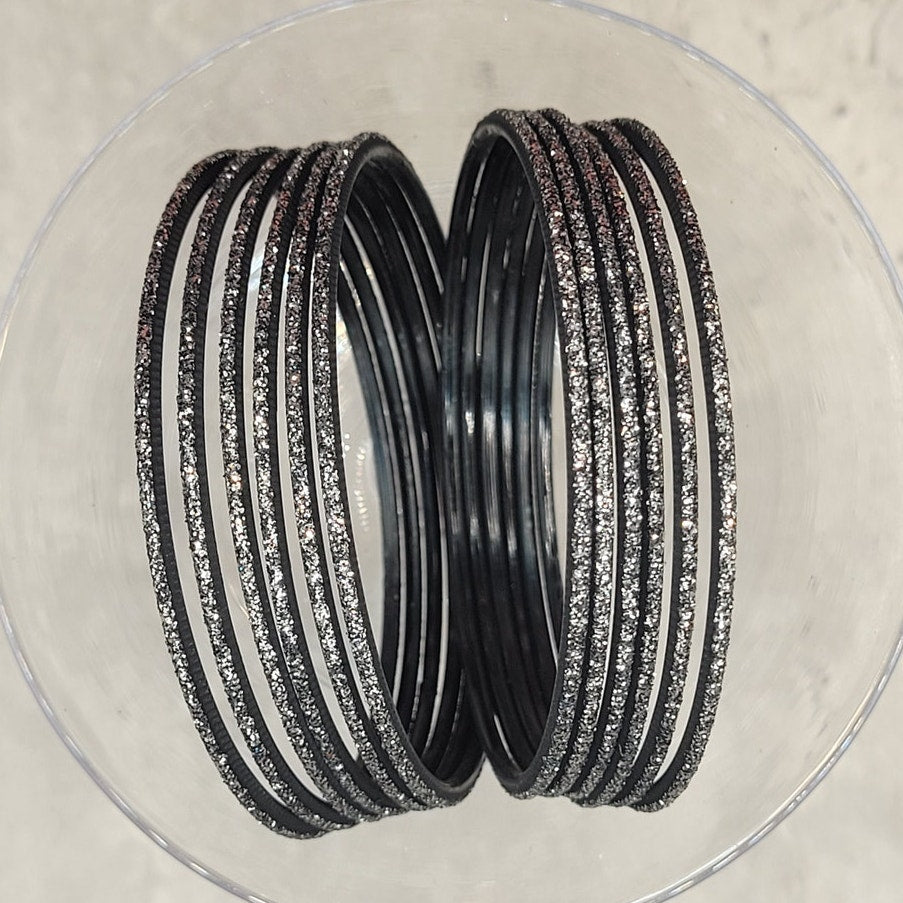 Black with Silver Glitter Thin Metal Bangles Metallics Stack of 6