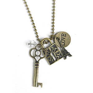 Monarch Five charm necklace Key Eiffel Tower Crystal Love Lock