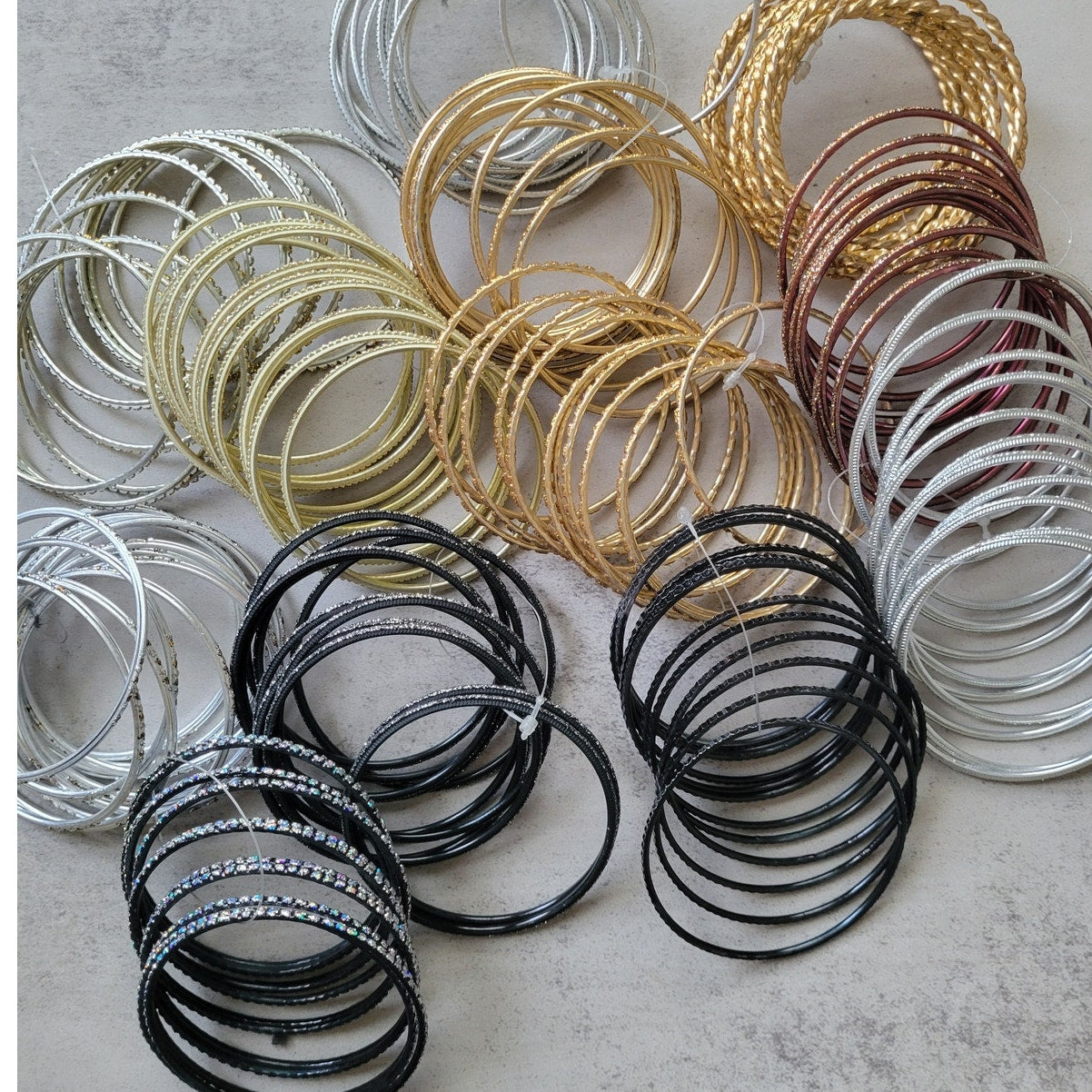 Silver with Gold Glitter Thin Metal Bangles Metallics Stack of 6
