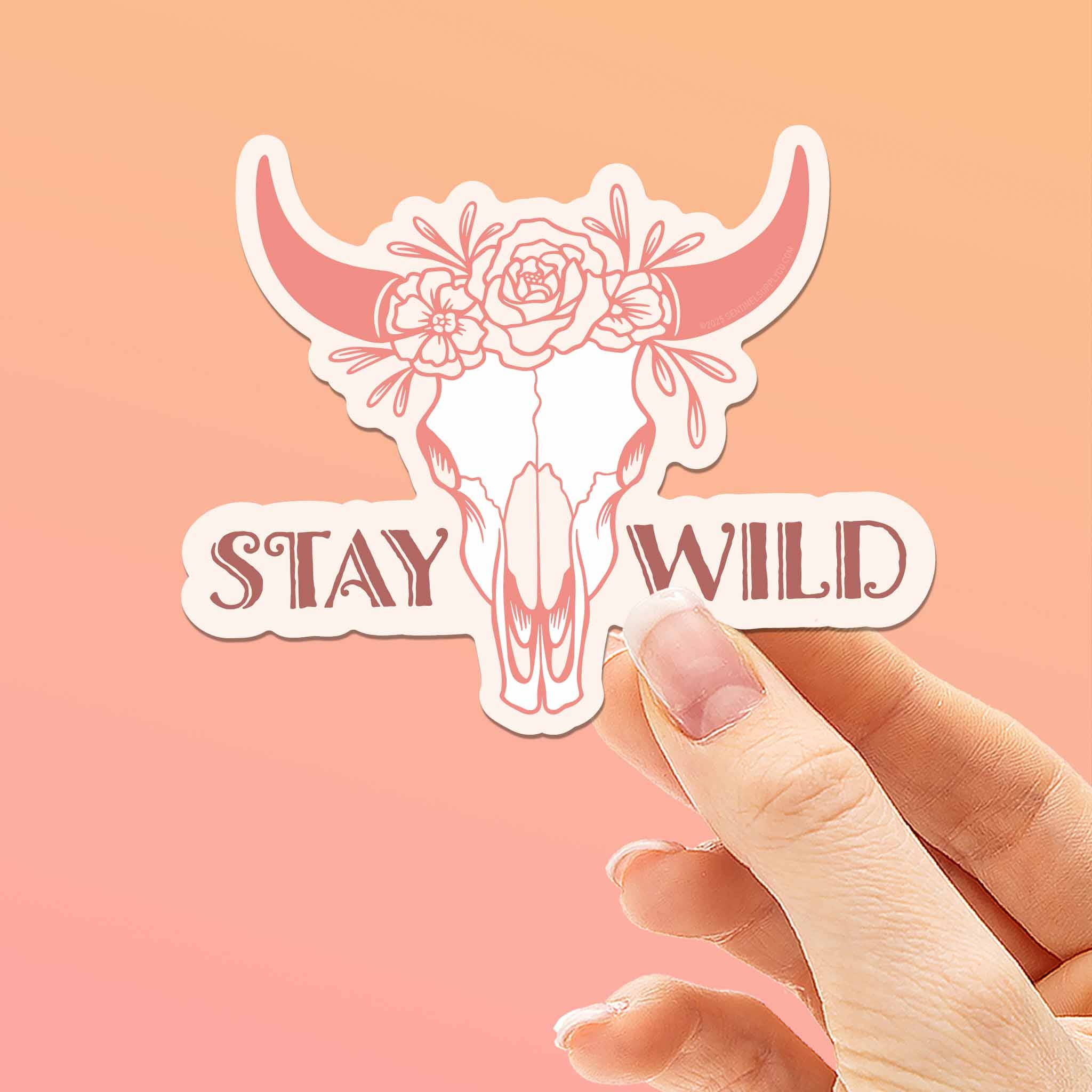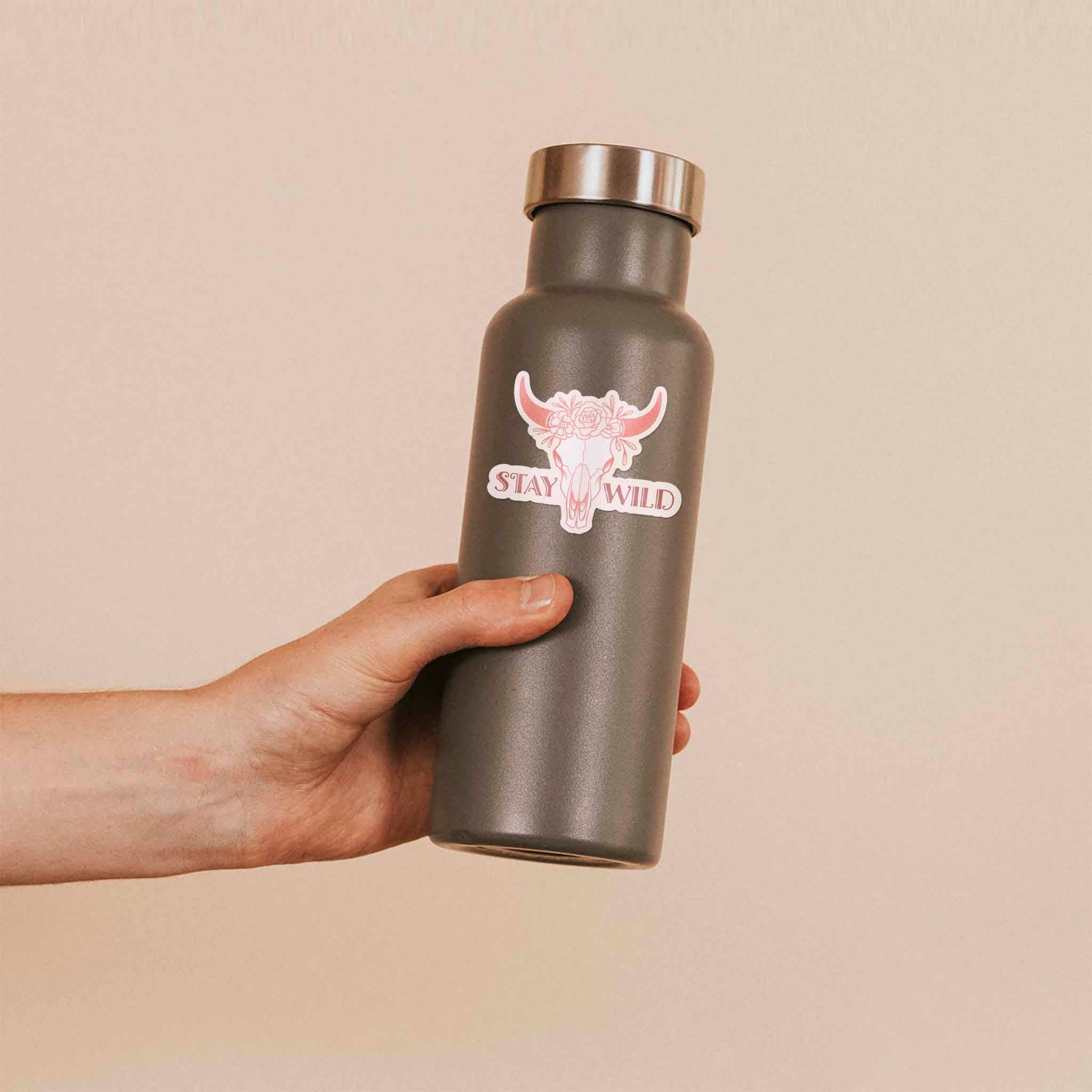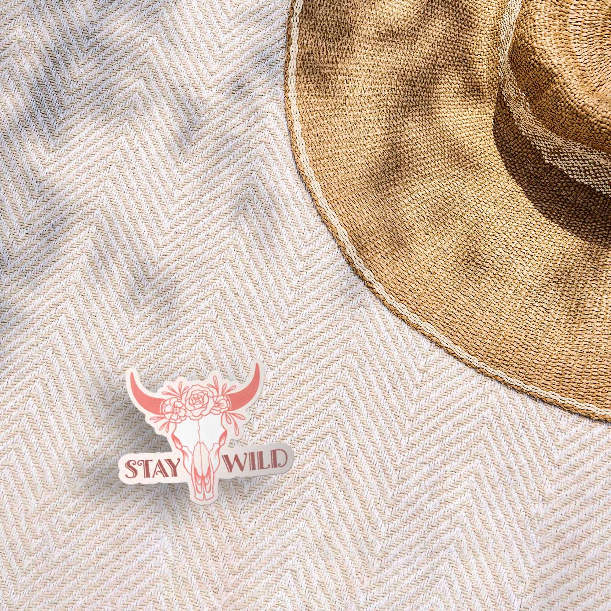 Stay Wild Cow Skull Pink Cowgirl Vinyl Sticker