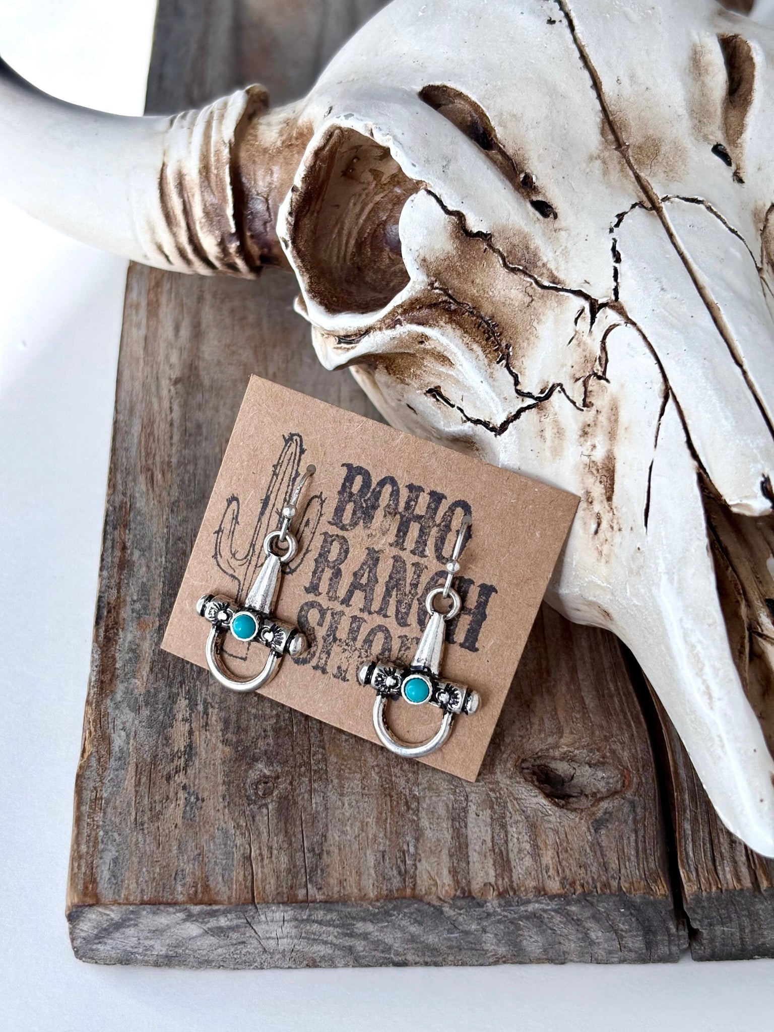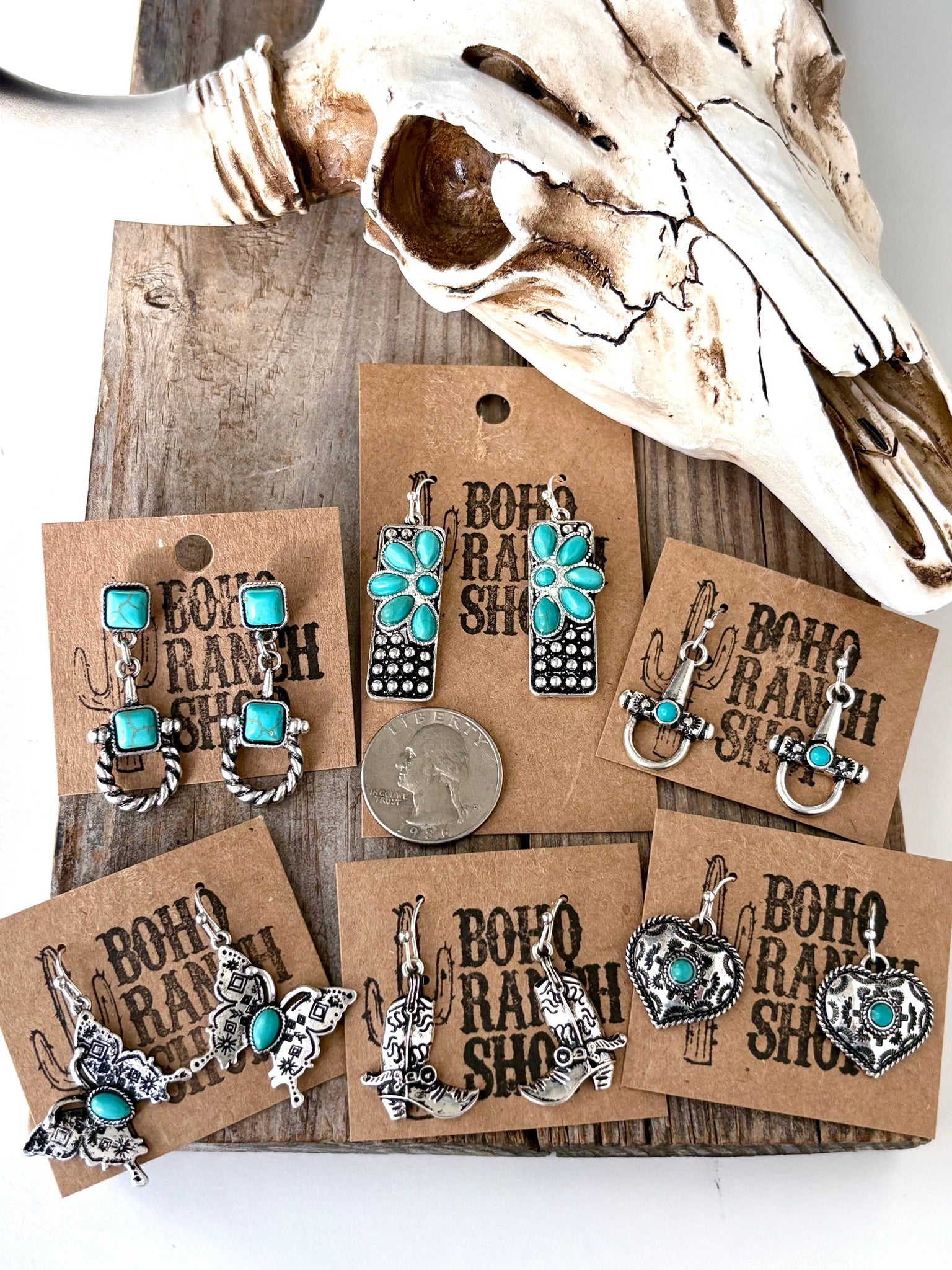 Whether you're drawn to the playful butterfly, the classic Western boots, or the equestrian horse bit, these earrings bring personality and Southwestern flair to any outfit. The turquoise stones catch the light beautifully, adding a pop of color that complements the brushed silver finish.