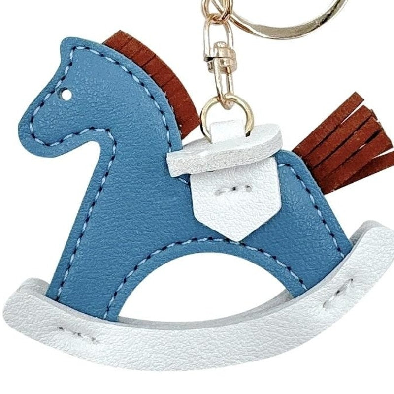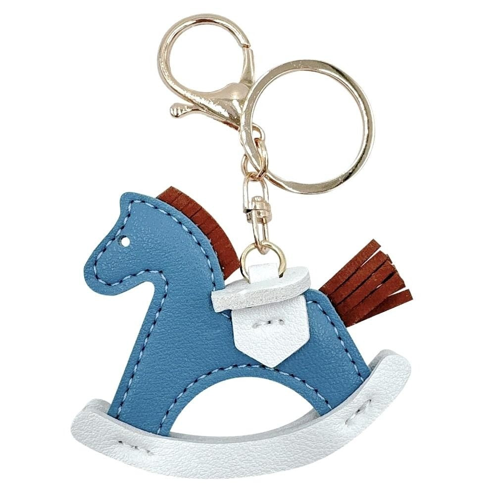 Do Everything In Love Vegan Leather Rocking Horse Key Ring Blue White