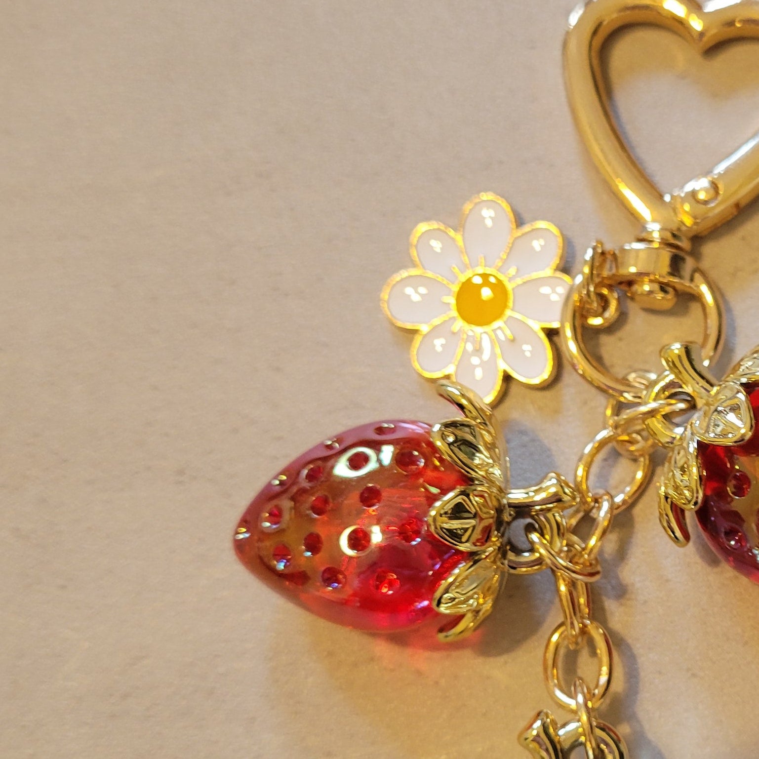 Strawberries and Enamel Daisy Keychain Bag Charm