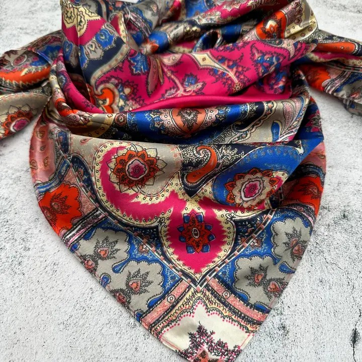 Faceted Pink and Blue Western Southwestern Wild Rag Scarf Accent