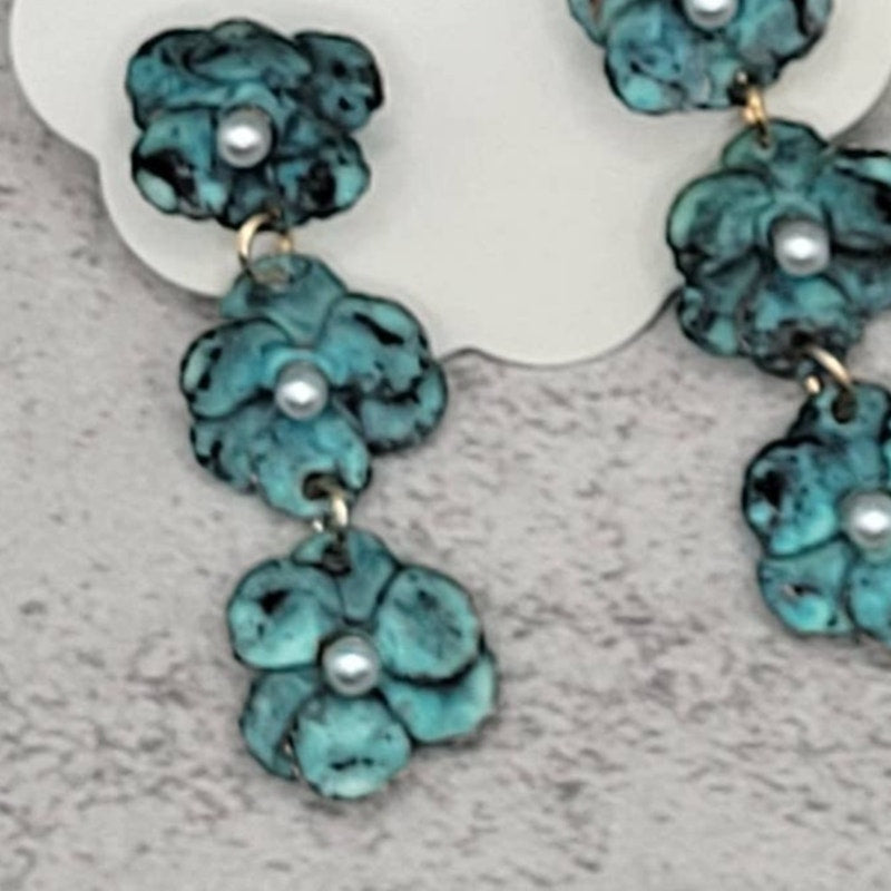 Green Patina Flowers Dangle Earrings