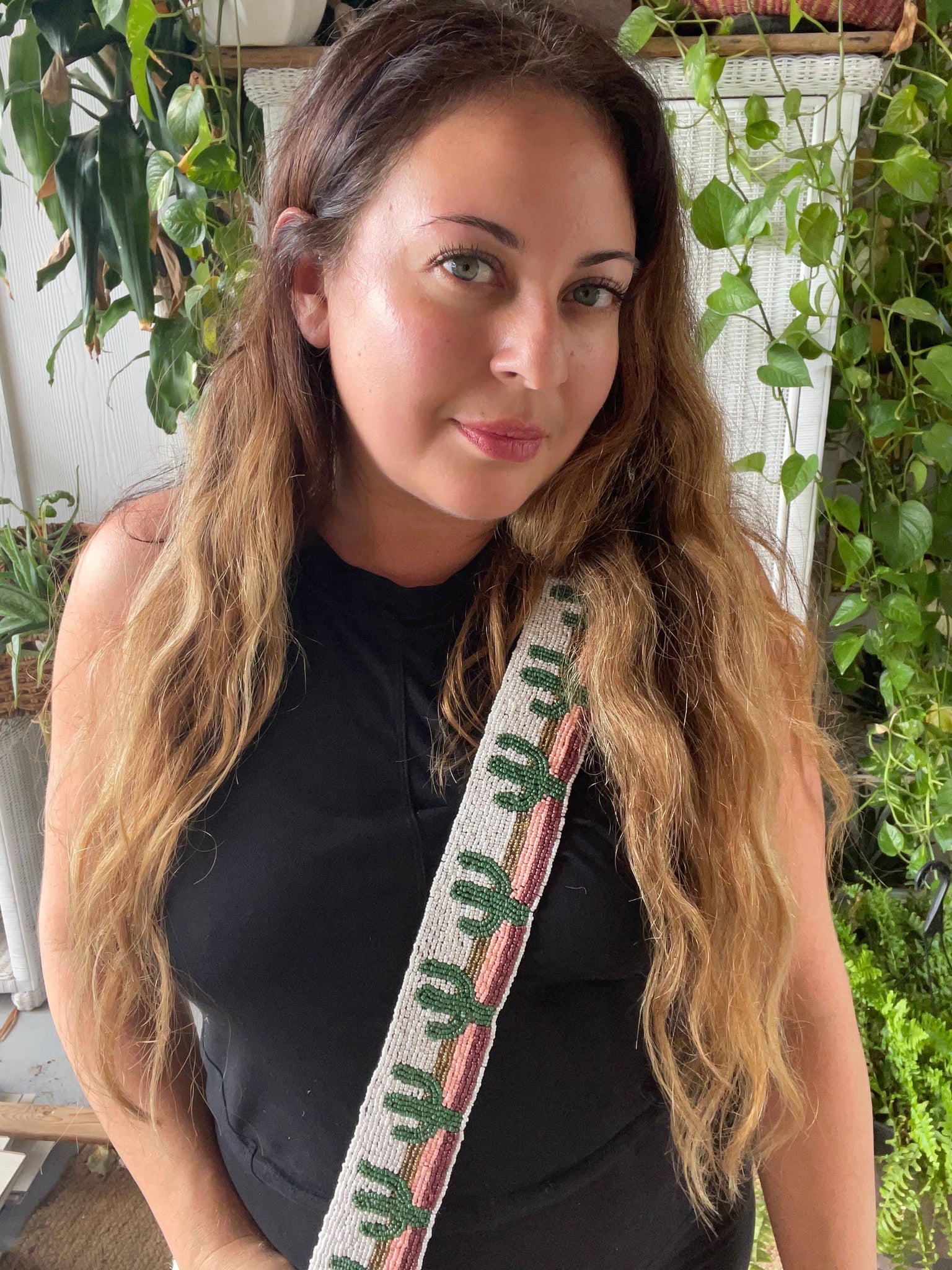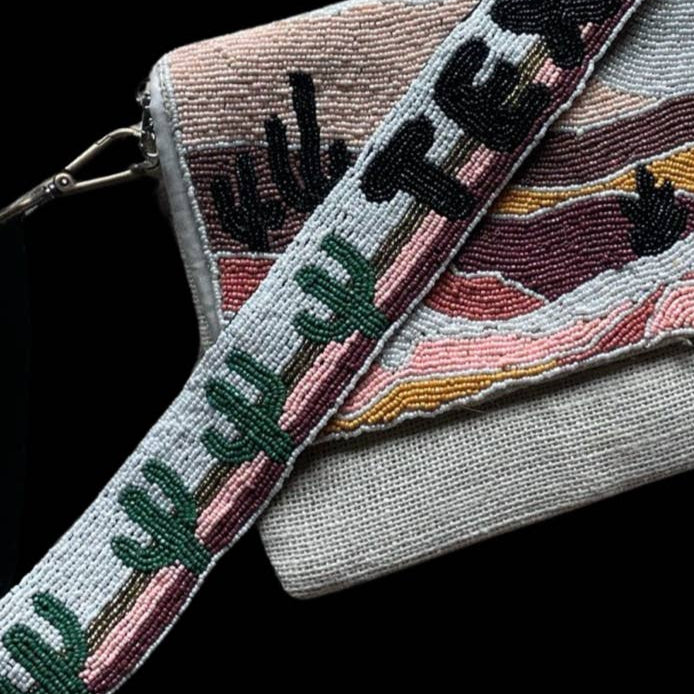 Hand Beaded Western Texas Cactus Crossbody Purse Bag Strap
