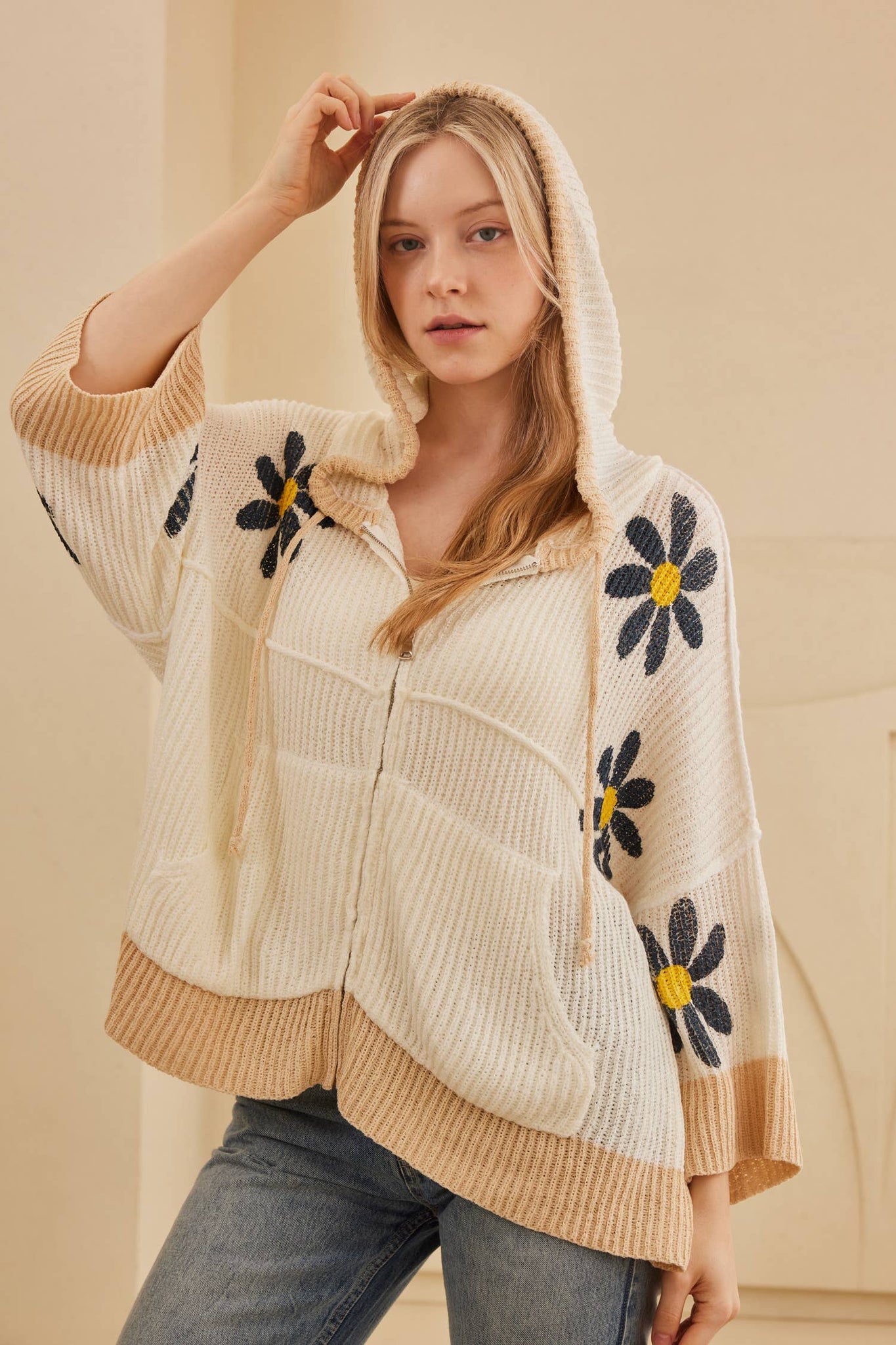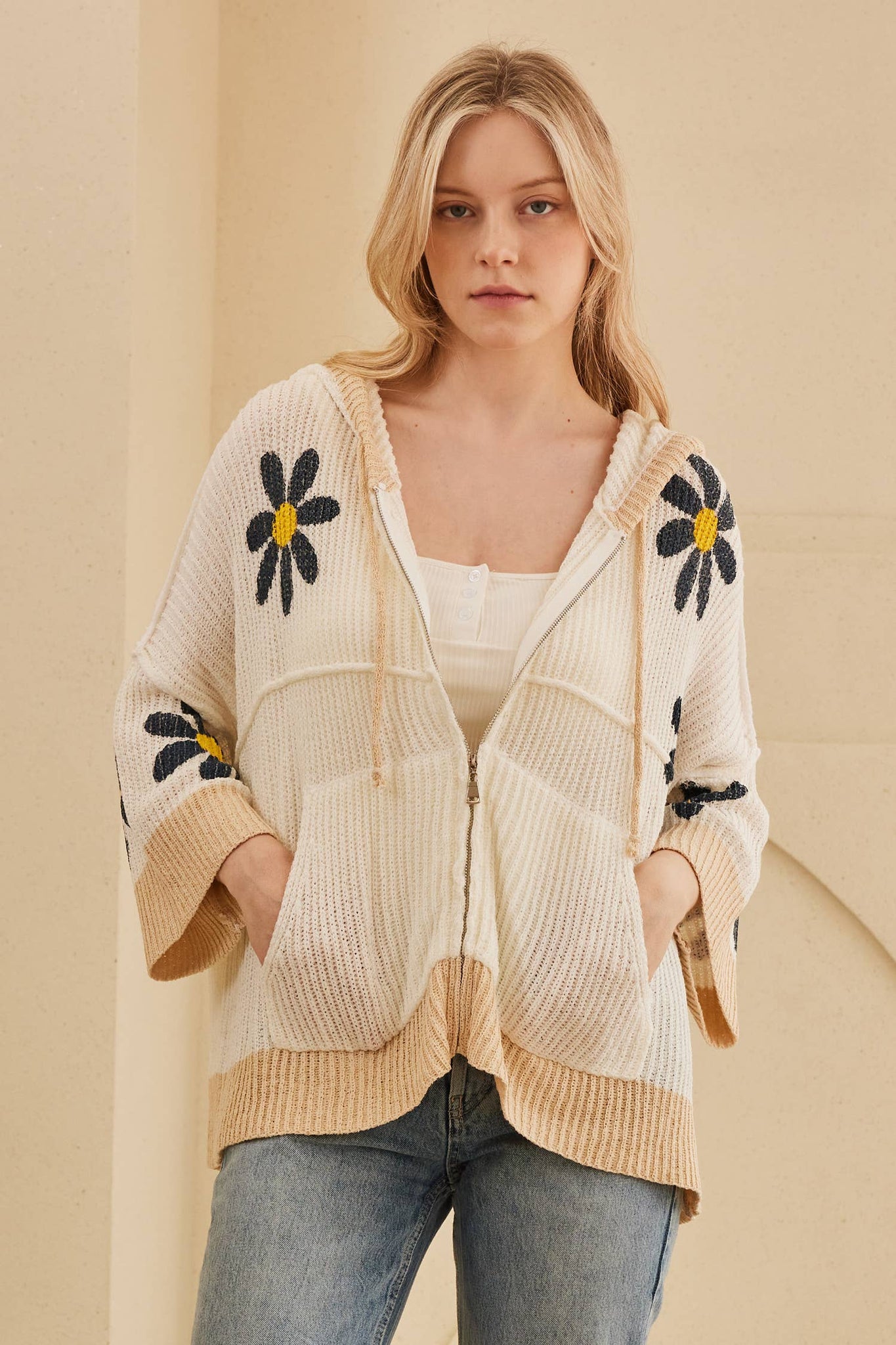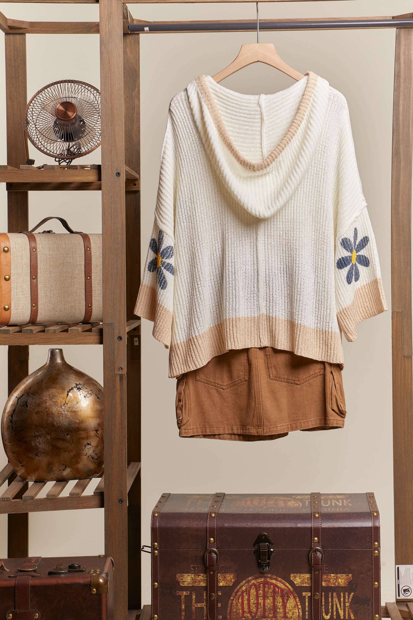 Hooded Floral Crochet Quarter Sleeve Top Size : Small