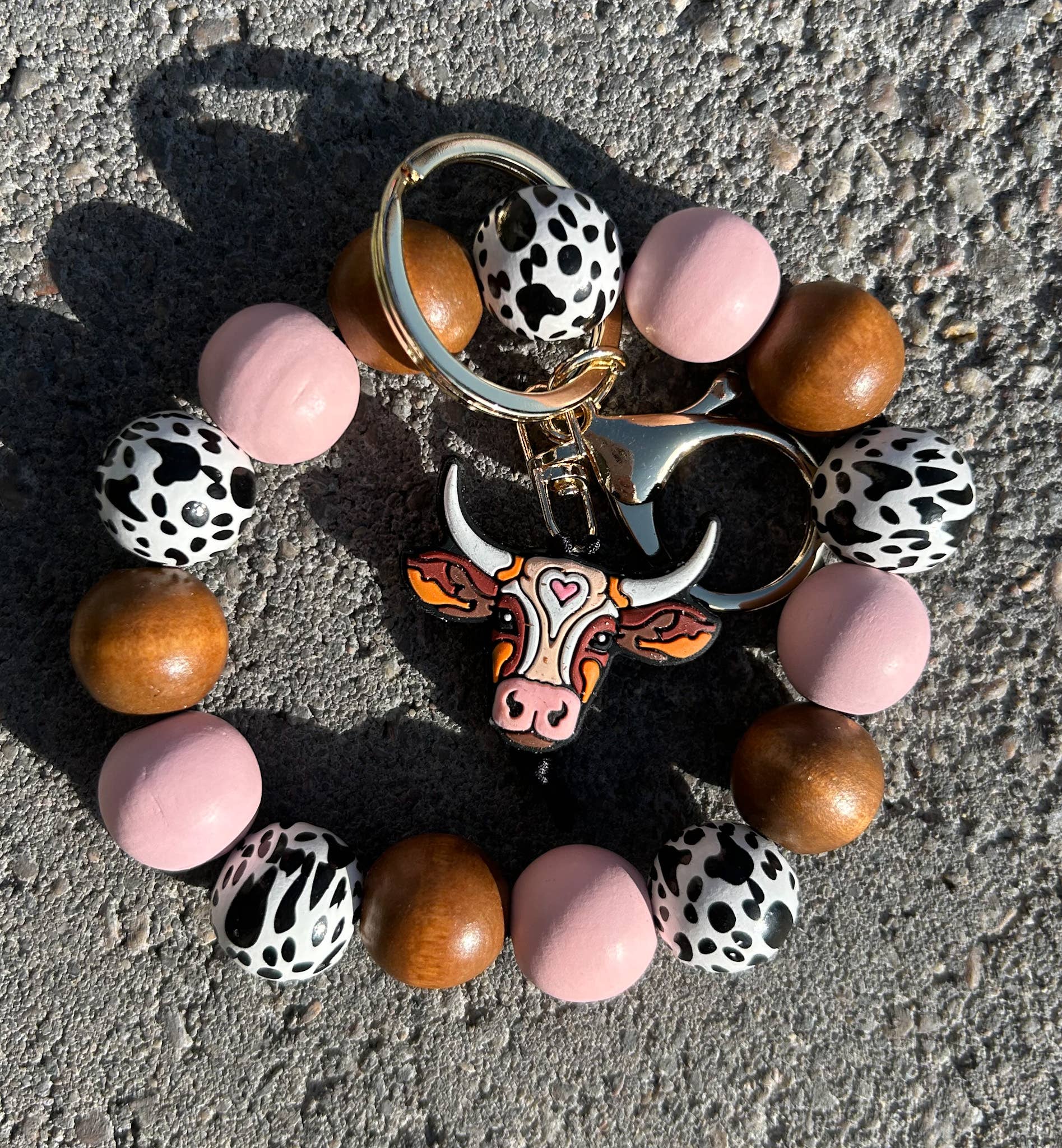 Longhorn Western Focal Bead Wristlet Keychain Silicone Wood