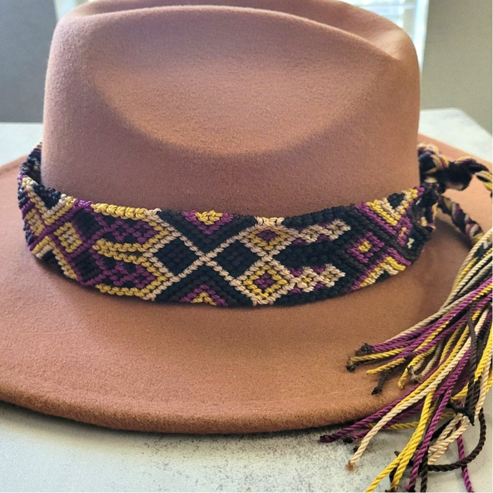 Purple Brown Black Tan Gold Woven Braided Western Aztec Adjustable Hat Band