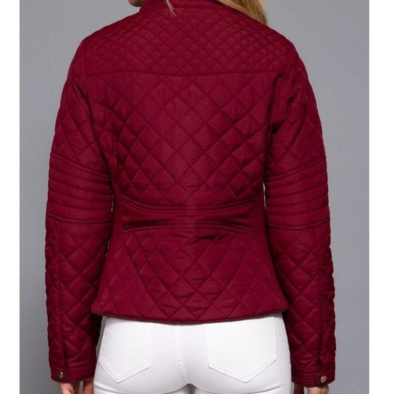 Suede Piping Detail Knit Rib Quilted Padding Jacket Dark Wine