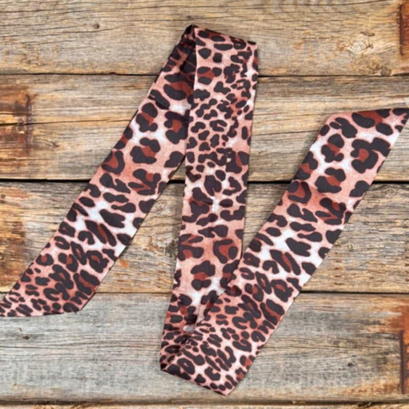 Tan and Brown Leopard Western Skinny Cowgirl Mini Wild Rag Scarf Necktie