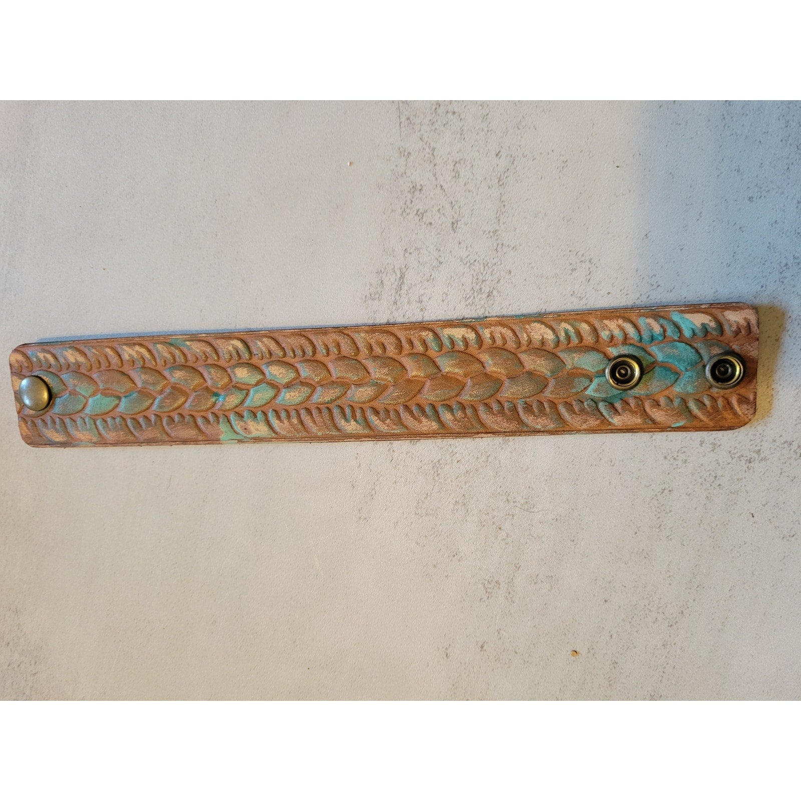 Look at these beauties! All tooled and dyed. Each is one of a kind with double snaps for multi size wrists.