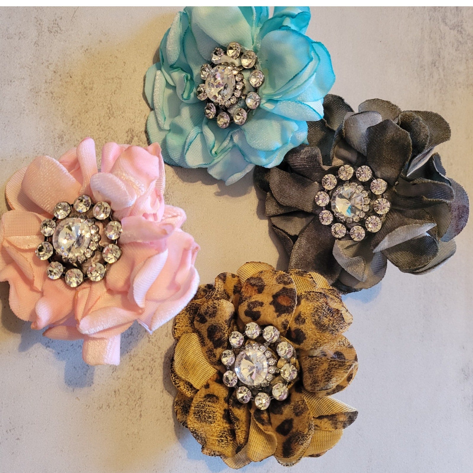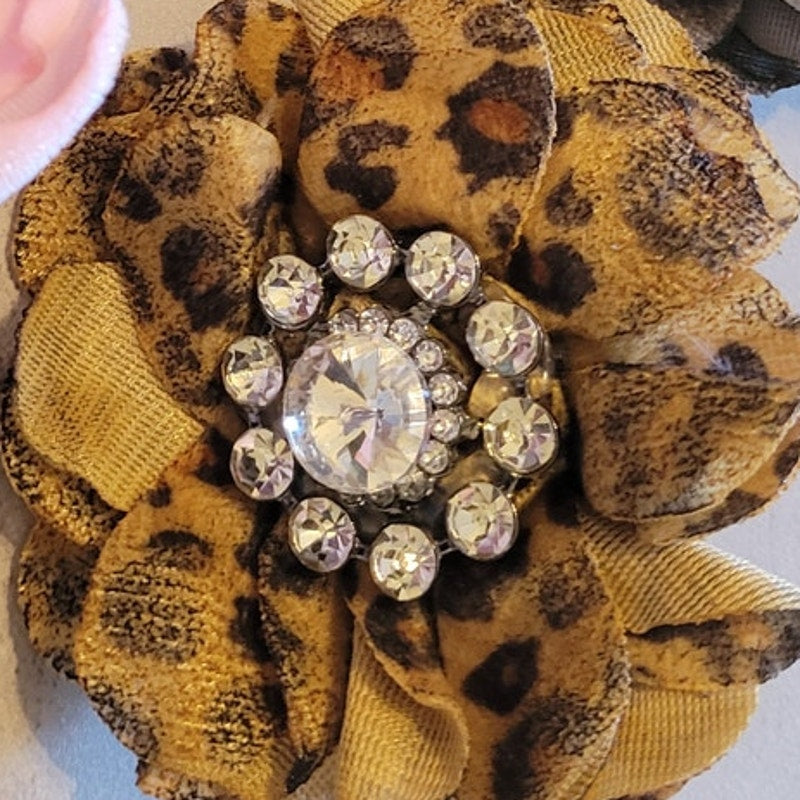 Hand Dyed Floral Crystal Center Velvet Scarf Tee Slide or Ring Leopard Print