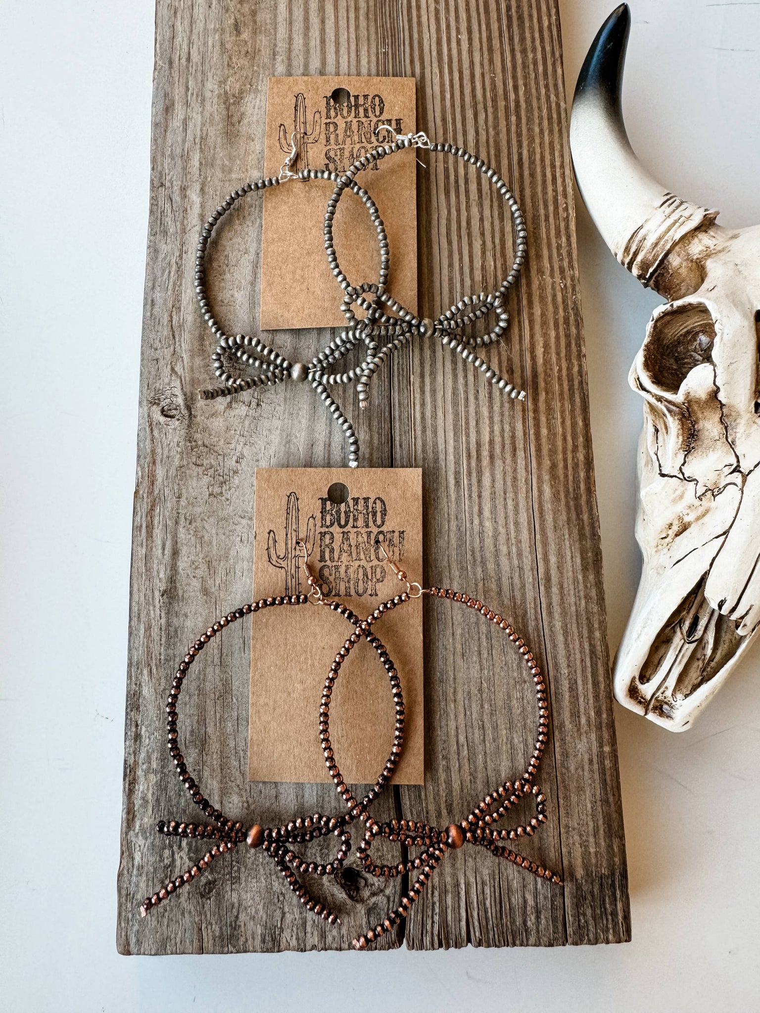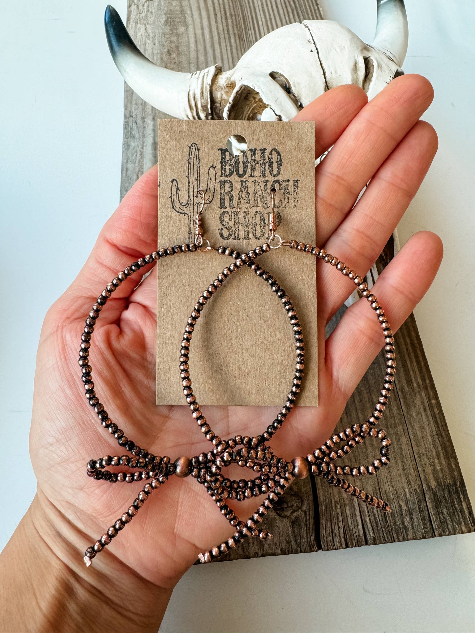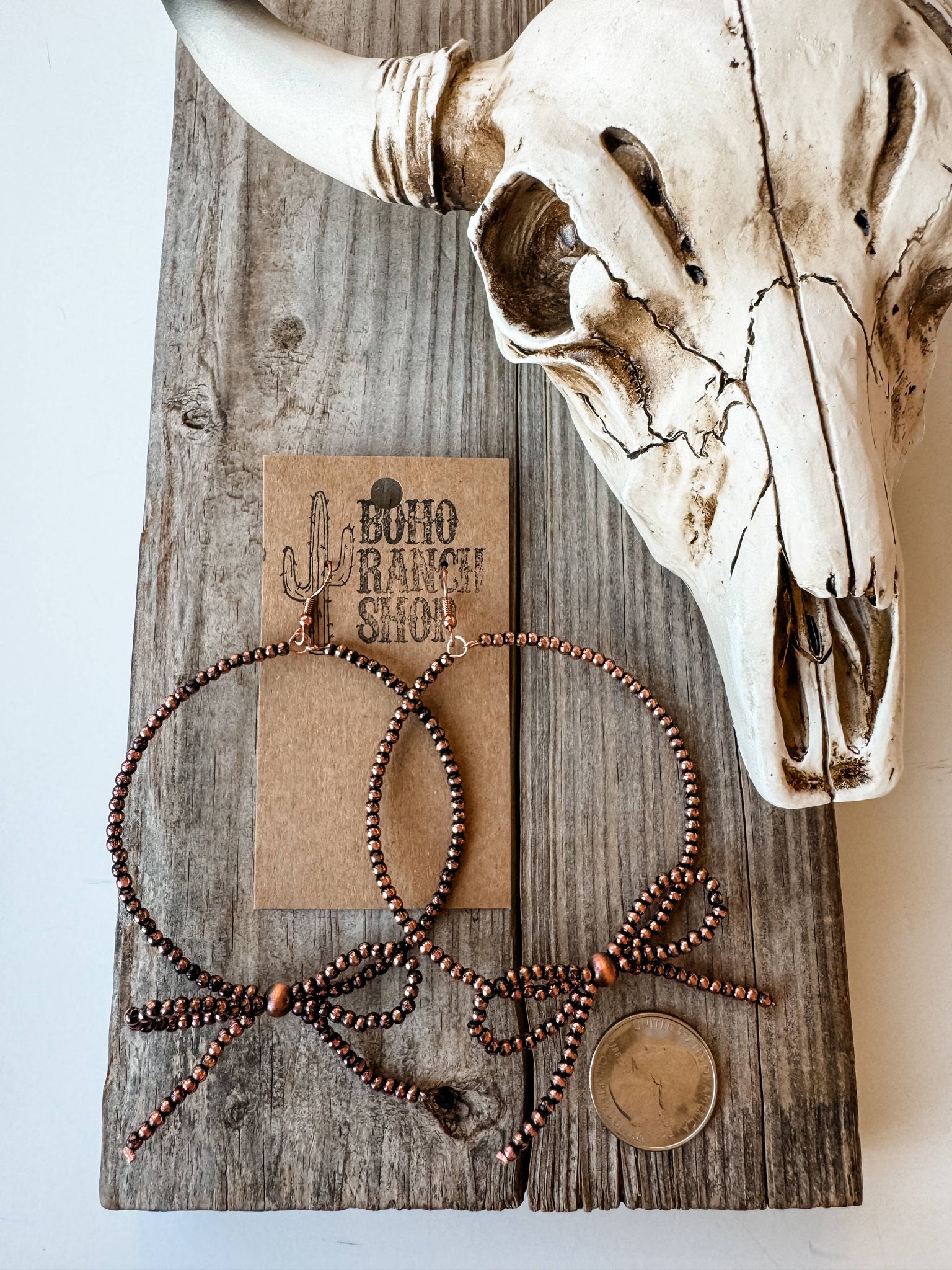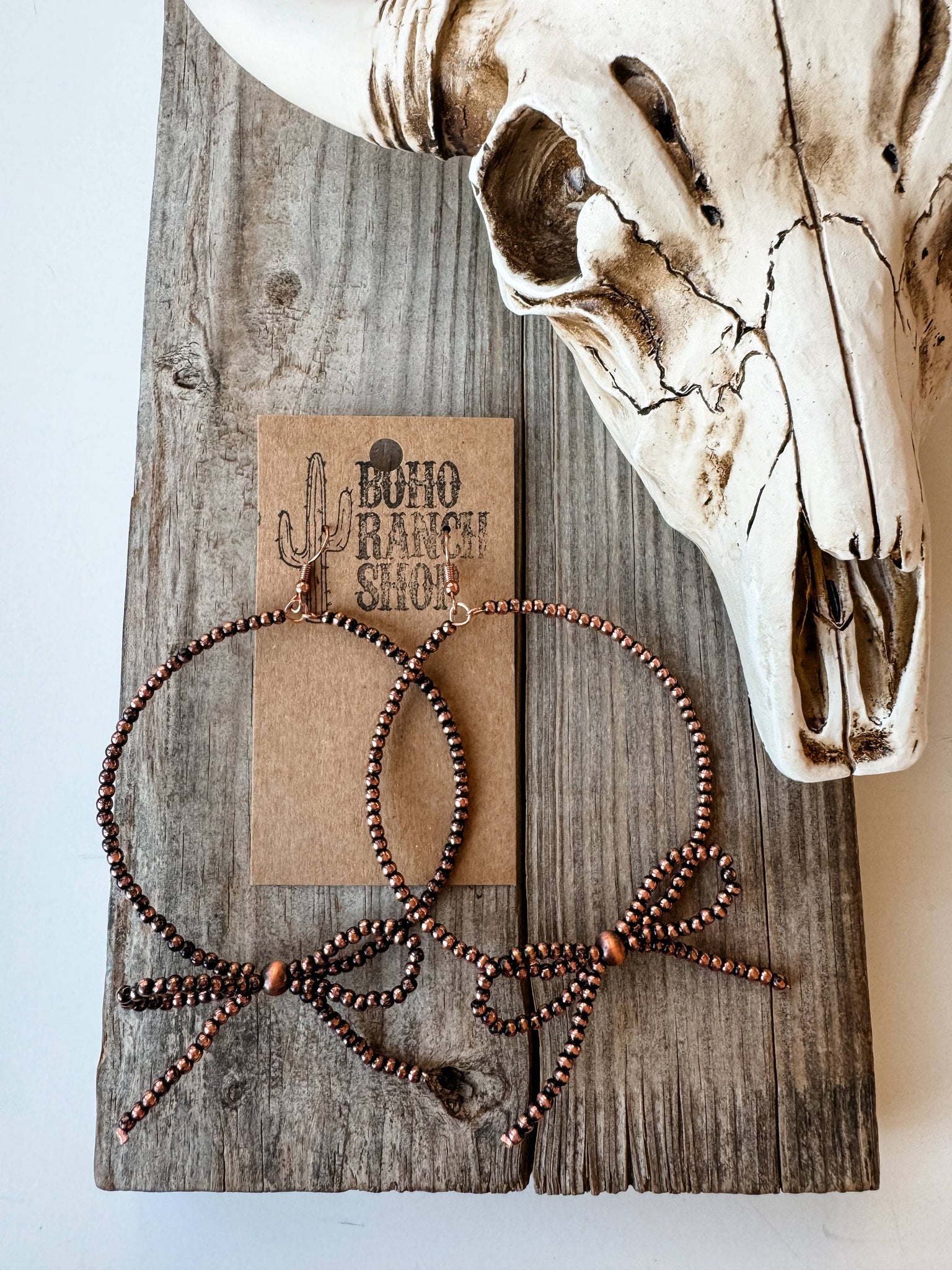 Western Navajo Style Pearl Bow Hoop Coquette Earrings Copper