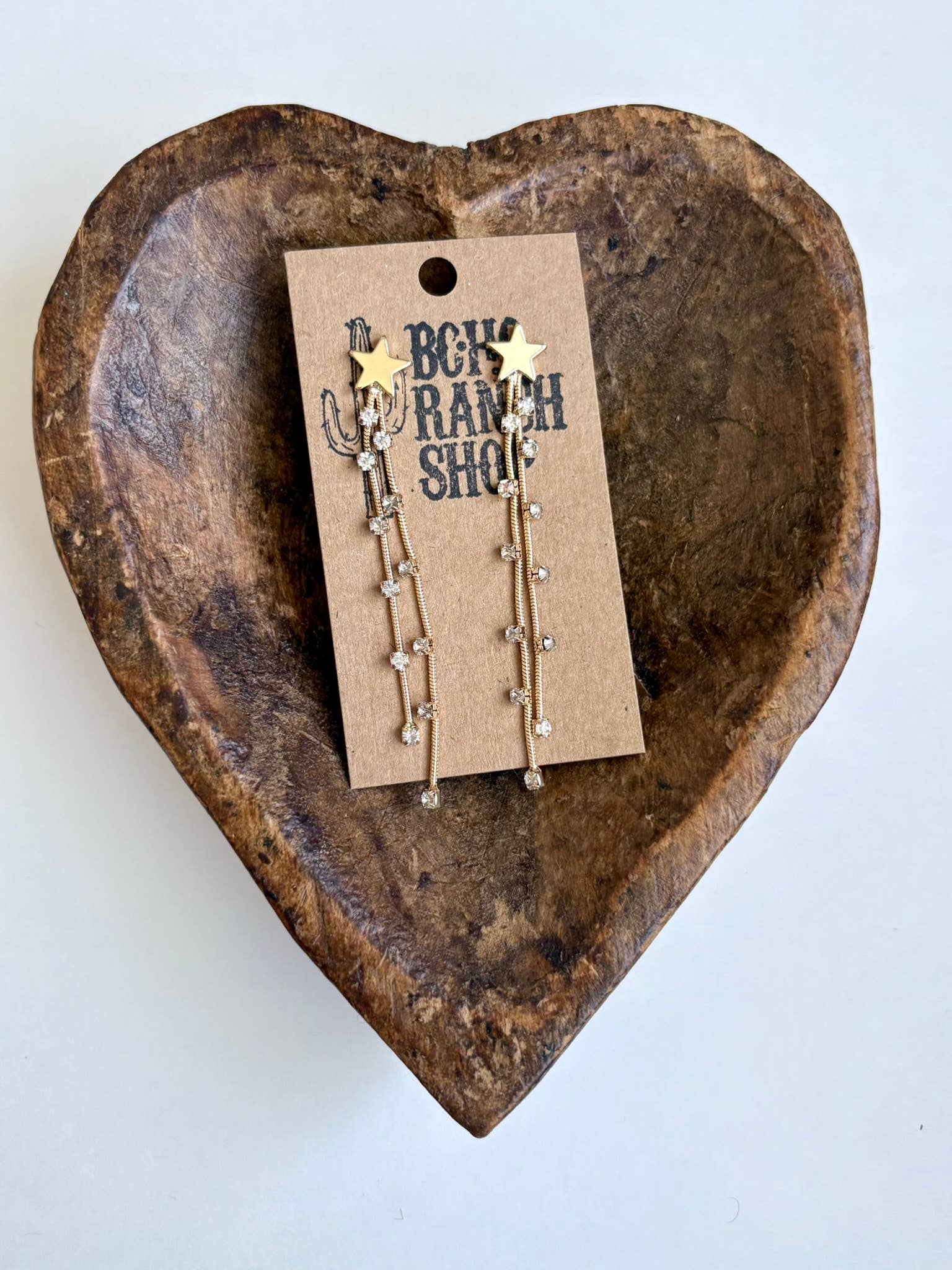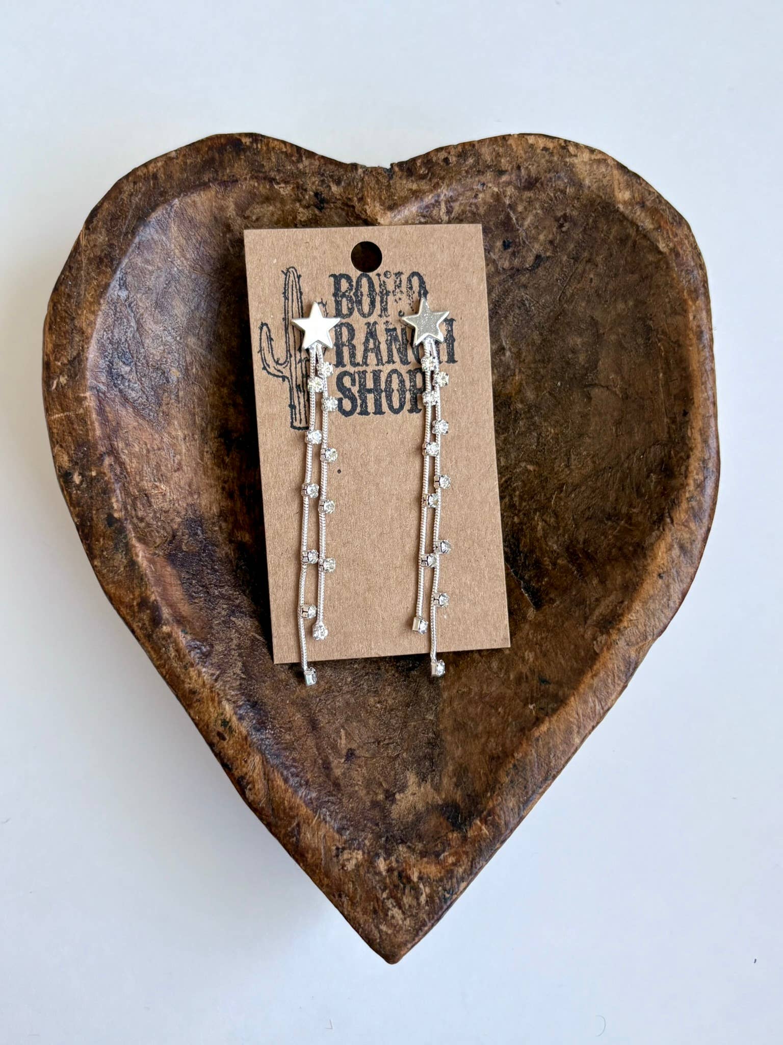 Western Cowgirl Bling Star Rhinestone Fringe Post Drop Earrings Silver