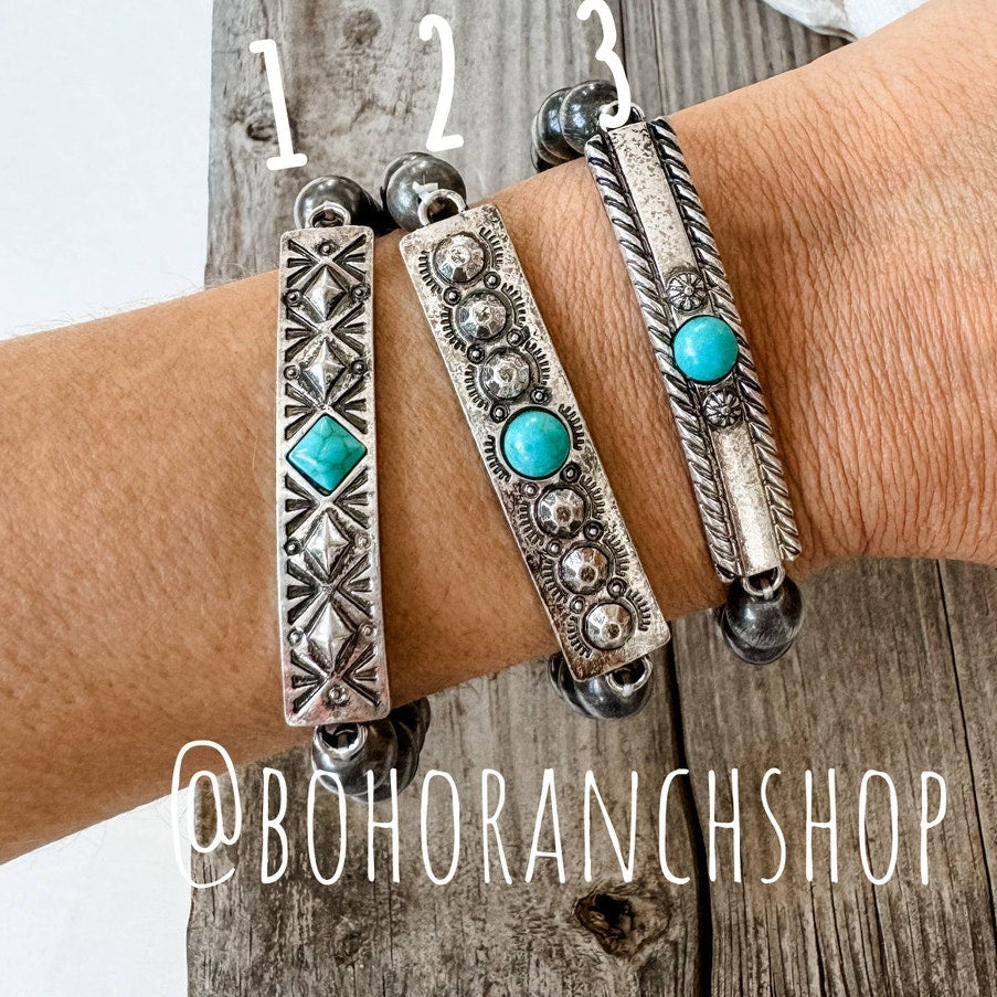 Aztec Boho Western Concho Stretch Bracelet Round Strip Bar Style 2