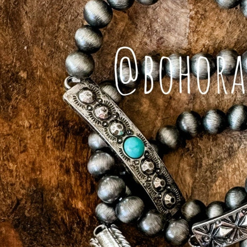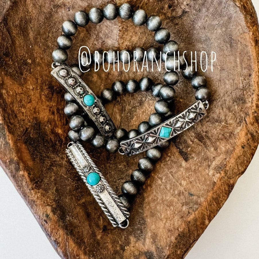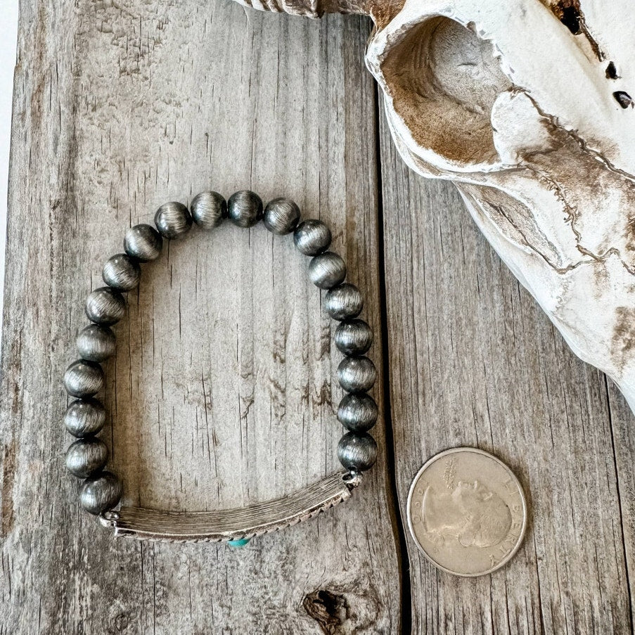 Western Semi Stone Stretch Bracelet - stretch bracelet - Silver round beads