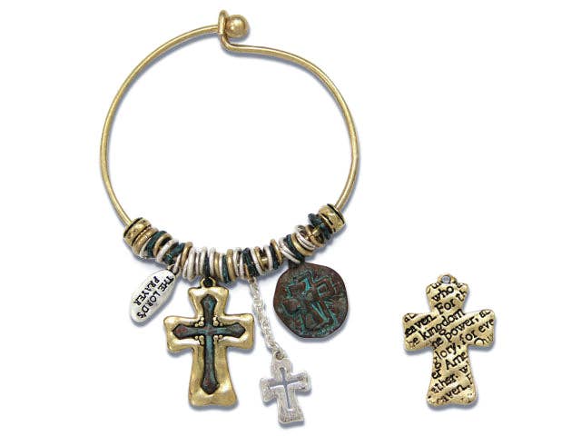Mixed Metal The Lords Prayer Cross Charm Bracelet