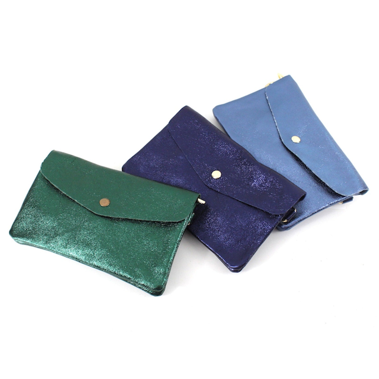 Metallic Italian Made Leather Clutch Crossbody Bag Brown Bronze