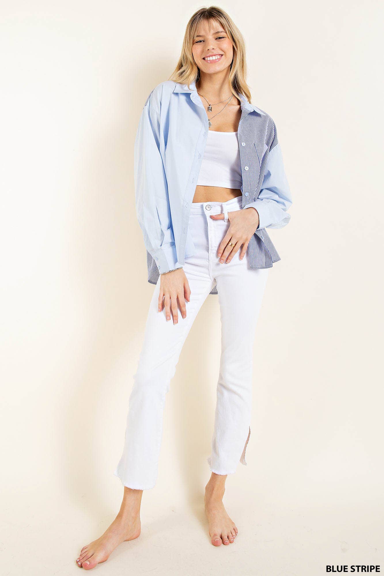 Mix and Match Stripe Long Sleeve Shirt Blue White