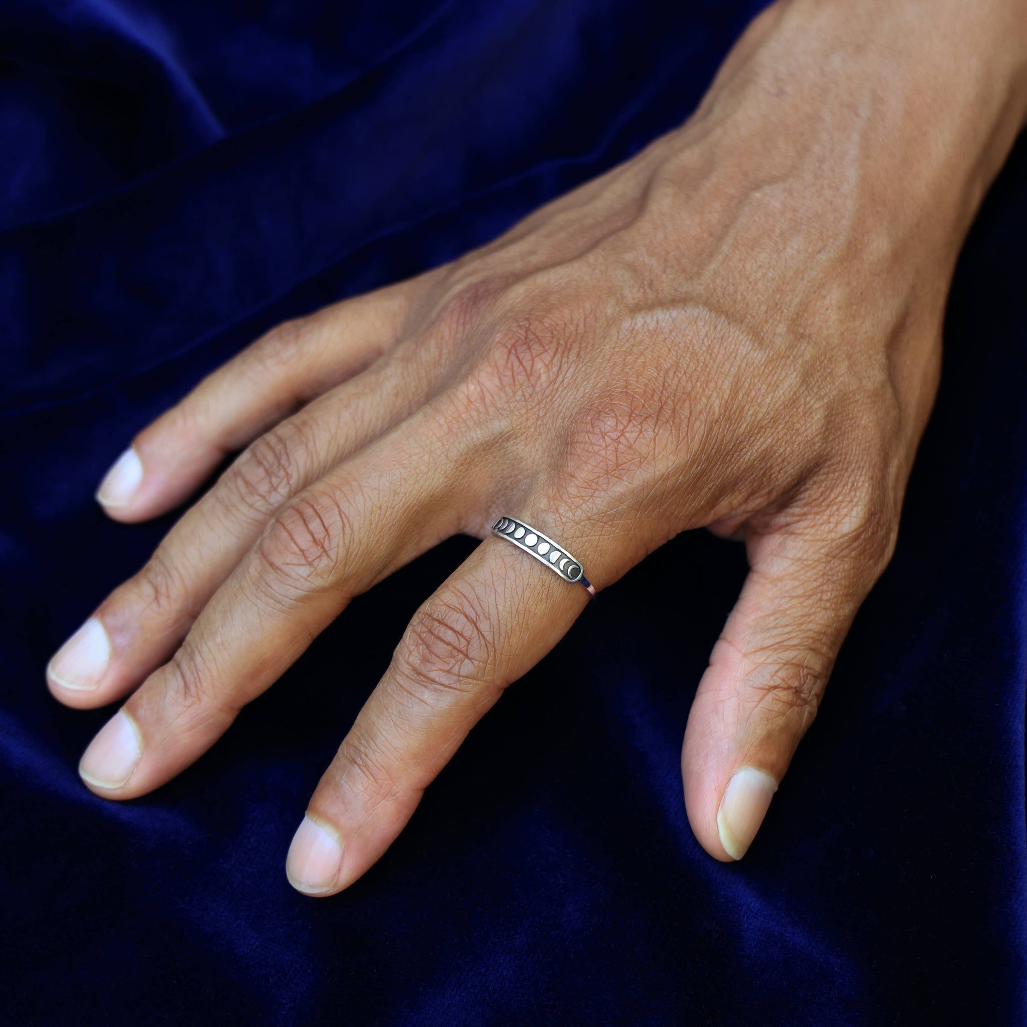 Artisan Sterling Silver Moon Phases Band Stacking Ring
