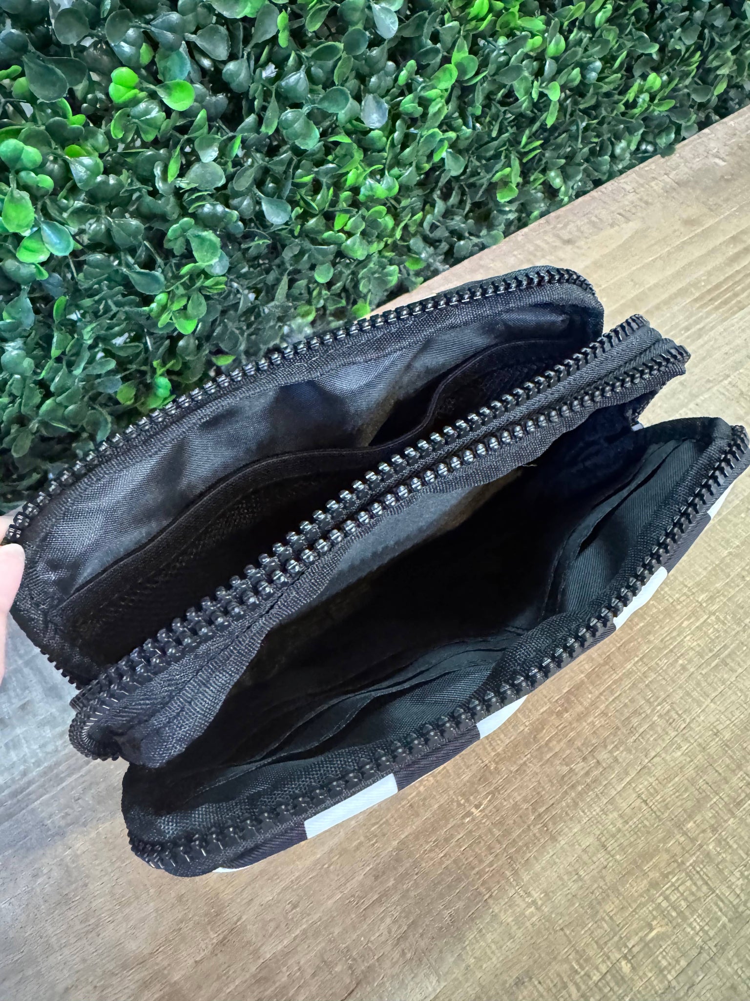 Black and White Check Nylon 2 in 1 Bag Crossbody Wristlet