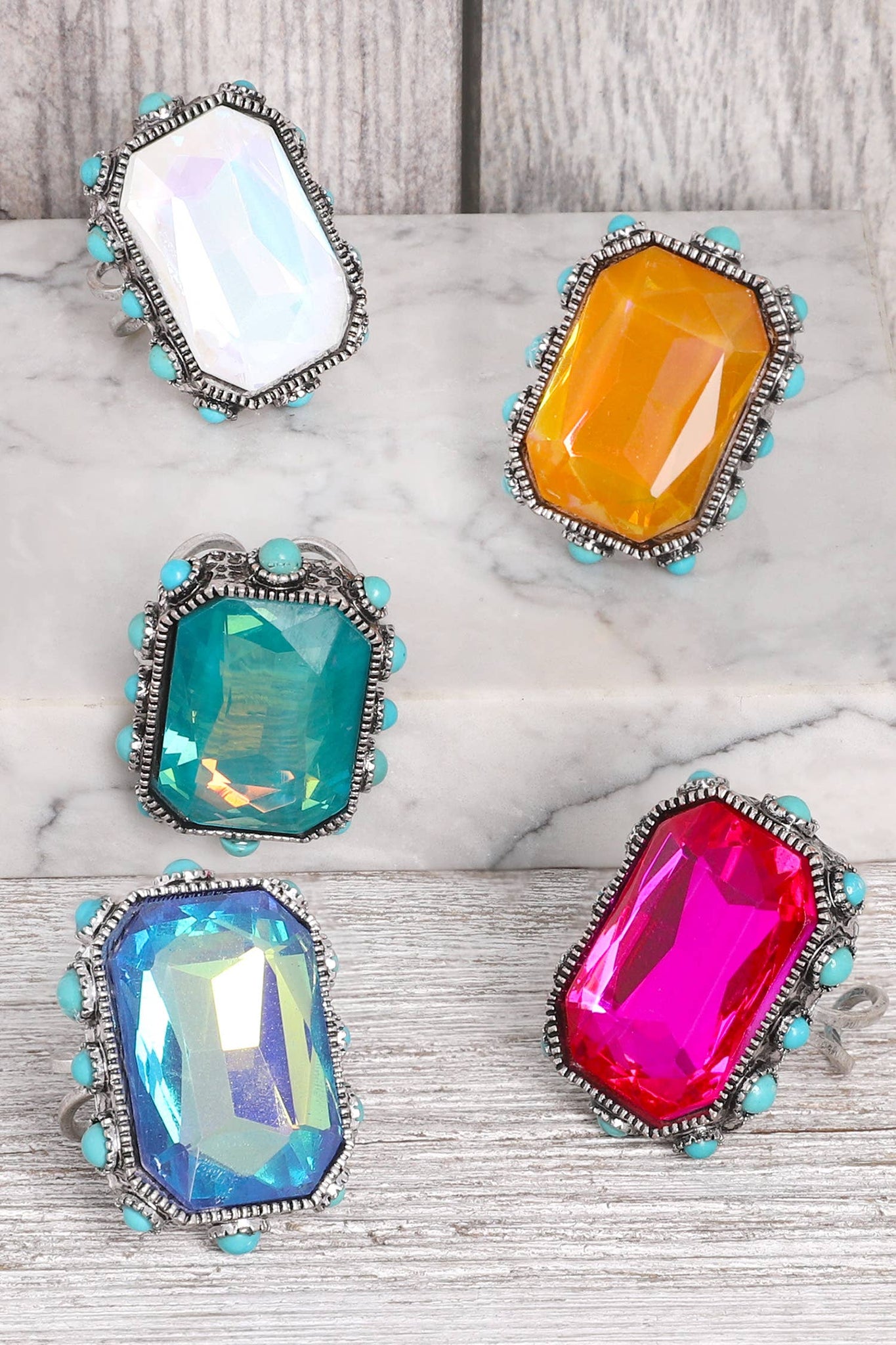 Western Octagon Cut Crystal Adjustable Ring Blue